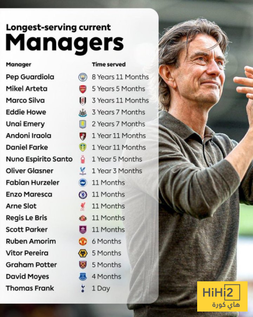 نشر البريميرليغ قائمة بالمدربين الاطول بقاء مع انديتهم في الدوري الانجليزي الممتاز ، وتصدر غوارديولا القائمة.