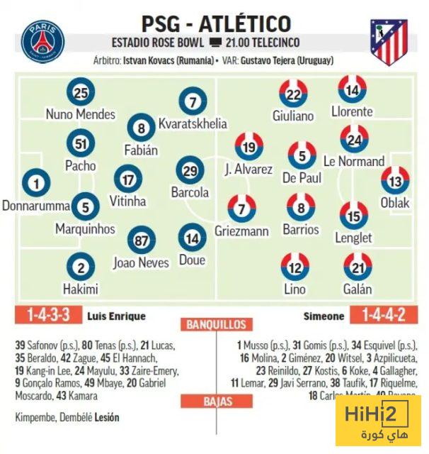 فيما يلي التشكيلة المتوقعة للفريقين وفقًا لصحيفة ماركا الإسبانية:
