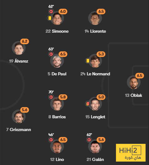 تقييم لاعبو اتلتيكو مدريد بعد الهزيمة: