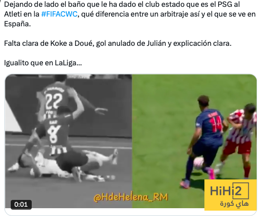 هاي كورة : يتسائل احد الجماهير الاسبانيه قائلا ” بغض النظر عن الهزيمة الساحقة التي ألحقها فريق باريس سان جيرمان، بأتلتيكو مدريد في كأس العالم للأندية ، يا له من فرق بين تحكيم كهذا والتحكيم الذي نراه في إسبانيا ! ”