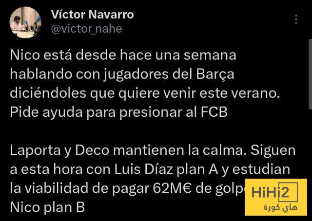 وبحسب نافارو، فإن نيكو كان يتحدث مع لاعبي الفريق الكتالوني منذ أسبوع، مؤكدًا لهم رغبته القوية في ارتداء قميص برشلونة، بل وطلب منهم المساعدة في الضغط على إدارة النادي لتسريع عملية التعاقد معه.