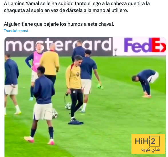هاي كورة : كتب احد الجماهير الاسبانيه حول الفديو الذي رمى فيه لامين يامال الملابس على الارض بدلا من ان يعطيها المسؤل عن جمع الملابس وقال :