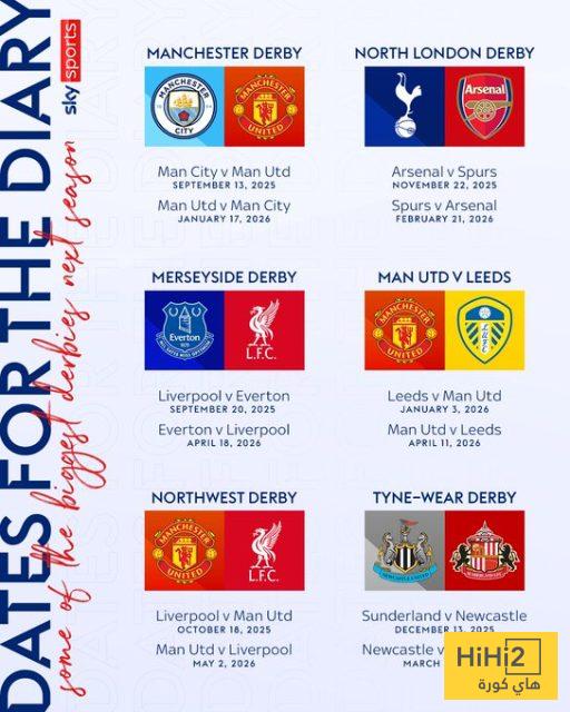هاي كورة – أعلنت رابطة الدوري الإنجليزي عن مواعيد أبرز المواجهات الكلاسيكية والديربيات المنتظرة في الموسم الجديد، وهذه أبرزها: