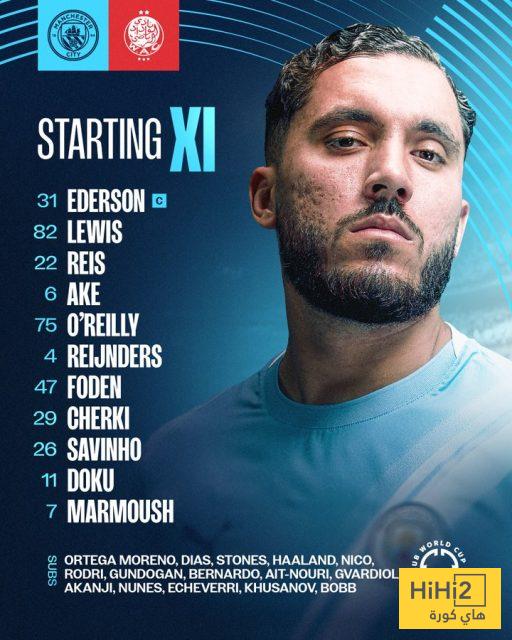 إليكم تشكيلة مانشستر سيتي الرسمية للقاء الوداد المغربي في كأس العالم للأندية: