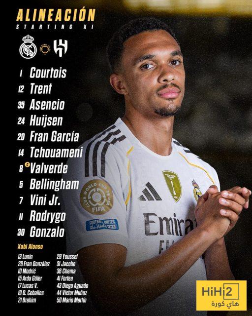 هاي كورة- أعلن تشابي ألونسو مدرب ريال مدريد عن تشكيلة فريقه الرسمية لمواجهة الهلال السعودي، على ملعب هارد روك، ضمن منافسات الجولة الأولى من بطولة كأس العالم للأندية.