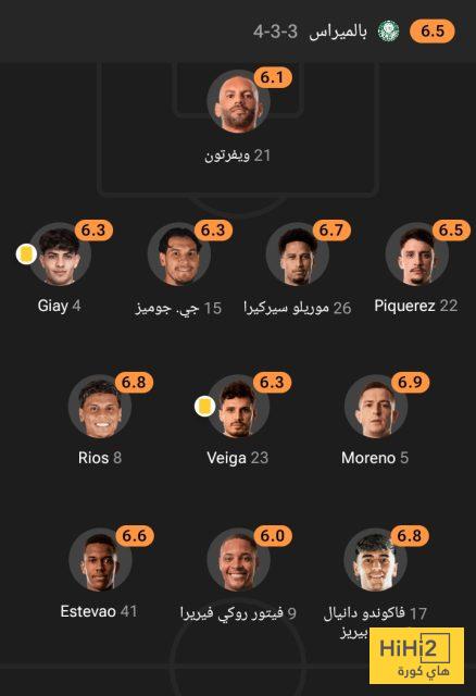 إليكم تقييم لاعبو بالميراس في الشوط الأول أمام الأهلي: