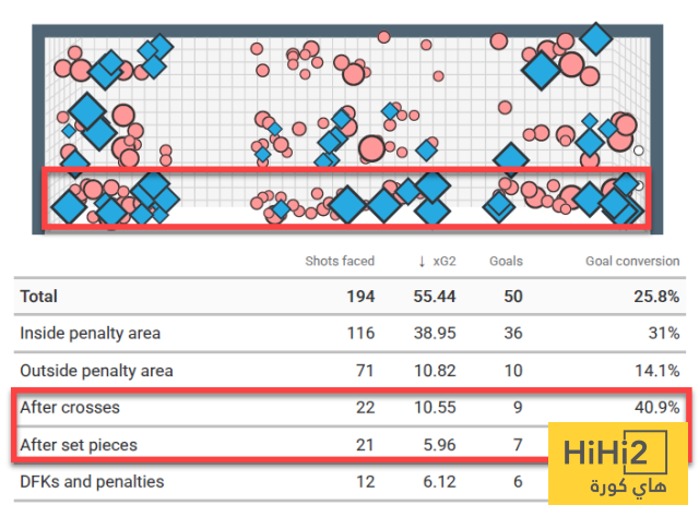 ولتحليل عمق تصديات غارسيا، تم استخدام مقياس “الأهداف المتوقعة المستقبلة” (xCG)، الذي يقيم احتمالية تسجيل الهدف بعد التسديدة.