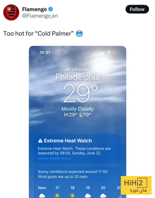 حساب نادي فلامينغو الرسمي عبر إكس غرد بعد المباراة : “طقس حار جدا لـ “كول بالمر”.