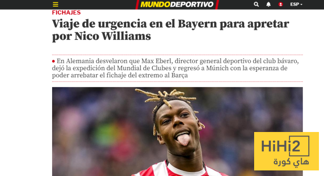 هاي كورة – يبدو أن المنافسة على خدمات نيكو ويليامز، نجم أتلتيك بيلباو، لم تنته بعد، حيث دخل بايرن ميونخ بقوة على خط المفاوضات، محاولًا تعطيل خطة برشلونة لحسم الصفقة هذا الصيف.