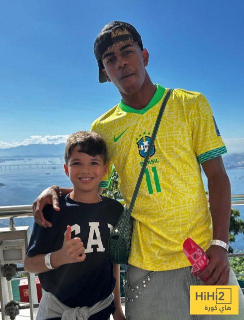 هاي كورة- خاض نجم برشلونة الشاب لامين يامال مباراة كرة قدم حافية القدمين بقميص زميله رافينيا مع المنتخب البرازيلي، خلال زيارته لمنطقة روسينها العشوائية في البرازيل.