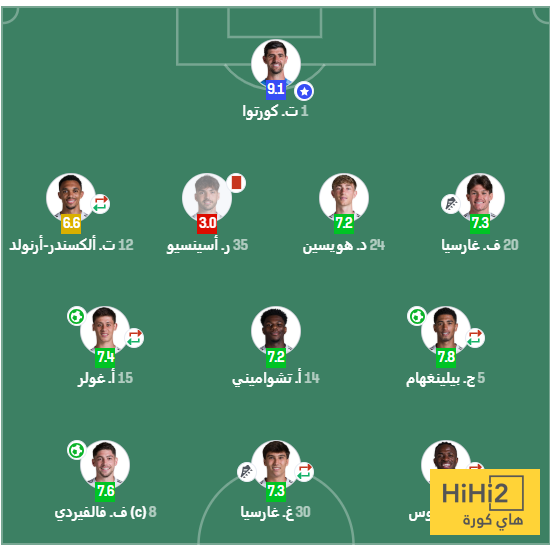 سجل أهداف ريال مدريد بيلينغهام و غولر وفالفيردي في الدقائق 70،43،35.