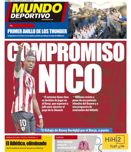 هاي كورة- تصدر اللاعب الاسباني نيكو ويليامز، صفقة برشلونة المنتظرة هذا الصيف، غلاف صحيفة موندو ديبورتيفو الاسبانية .