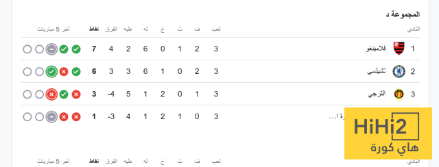 فيما يلي ترتيب المجموعة بعد نهاية دور المجموعات:
