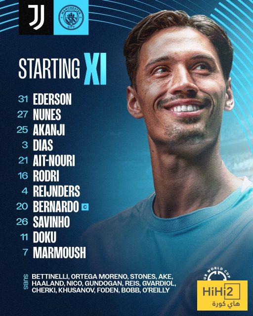 إليكم تشكيلة مانشستر سيتي الرسمية للقاء يوفنتوس في كأس العالم للأندية: