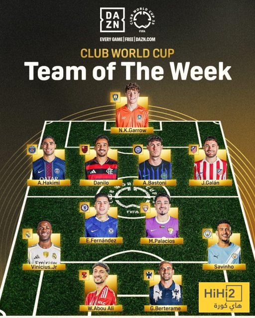 خط الوسط: إنزو فيرنانديز (تشيلسي)، ماتياس بالاسيوس (العين)، سافينيو (مانشستر سيتي)، فينيسيوس جونيور (ريال مدريد)