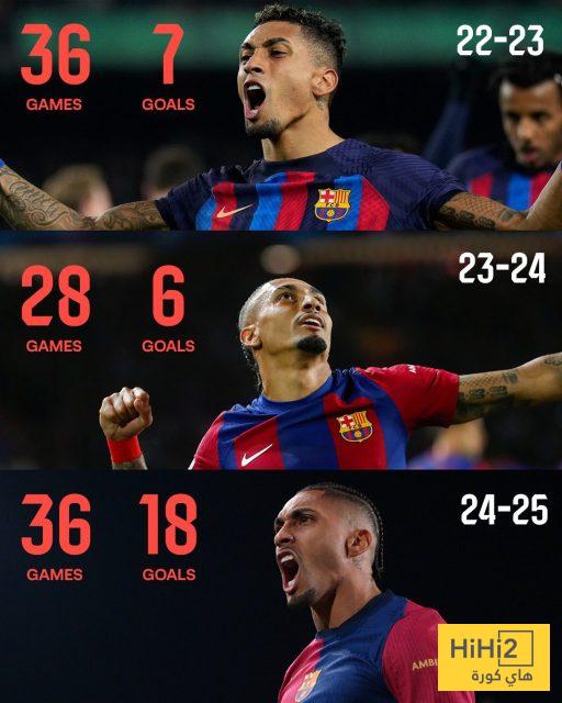 ومع استمرار تألقه، يبدو أن برشلونة كسب رهان الصبر على رافينيا، الذي تحوّل من لاعب مثير للجدل وكان قريبًا من الرحيل، إلى نجم لا غنى عنه في التشكيلة الأساسية للفريق.