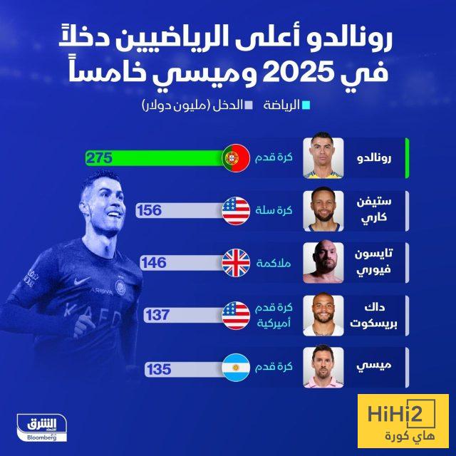 هاي كورة – تصدر البرتغالي كريستيانو رونالدو قائمة مجلة “فوربس” لأعلى الرياضيين دخلًا لعام 2025، بإجمالي بلغ 275 مليون دولار.