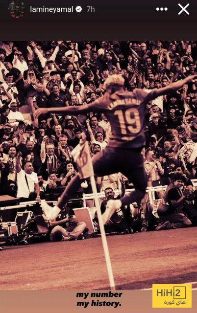 هاي كورة- يواصل لامين يامال نجم برشلونة الشاب إثارة الجدل، وهذه المرة بعيدًا عن الملعب، اللاعب نشر مؤخرًا صورة بقميصه رقم 19 مع تعليق غامض: “رقمي، قصتي”، في وقت ينتظر فيه الجميع إعلانه رسميًا صاحب الرقم 10 في برشلونة، بعد تأكيد رحيل أنسو فاتي.