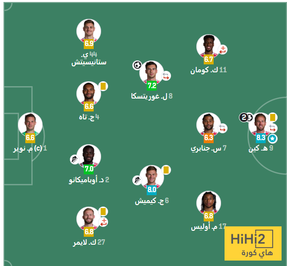 إليكم تقييم لاعبي بايرن ميونخ في المباراة: