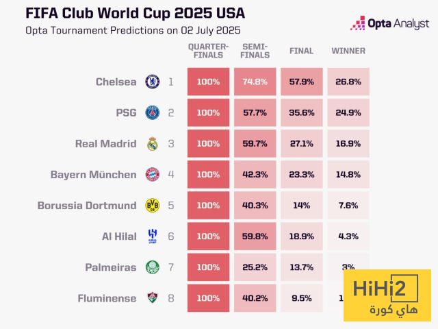 هاي كورة – بحسب المحاكاة الرقمية التي أجراها “الكمبيوتر العملاق” التابع لشركة “أوبتا”، أظهرت البيانات أن نادي الهلال يملك حظوظًا ملموسة في الوصول إلى الأدوار النهائية من بطولة كأس العالم للأندية 2025.