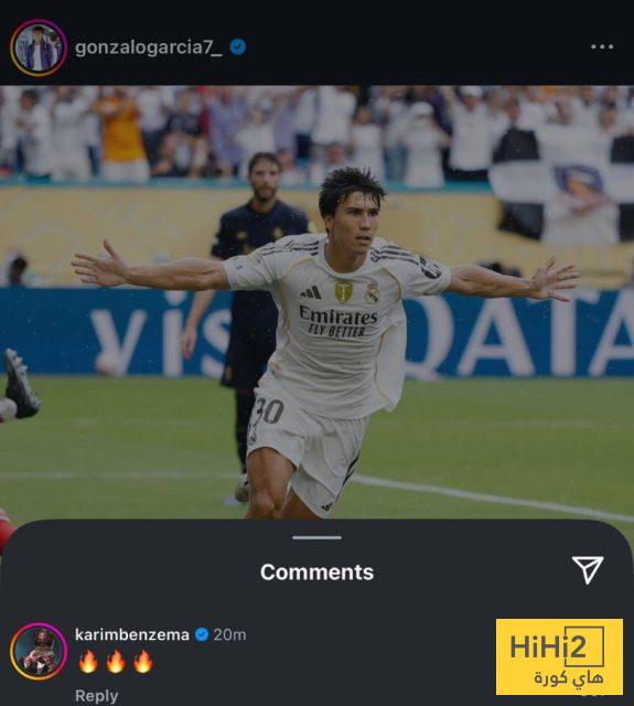 أسطورة الريال كريم بنزيما عبر الإنستغرام رد على منشور غونزالو غارسيا بوضع ملصق الشعلة ، مما يدل على إعجابه بالمهاجم الجديد الذي ساهم بـ4 أهداف في مونديال الأندية.