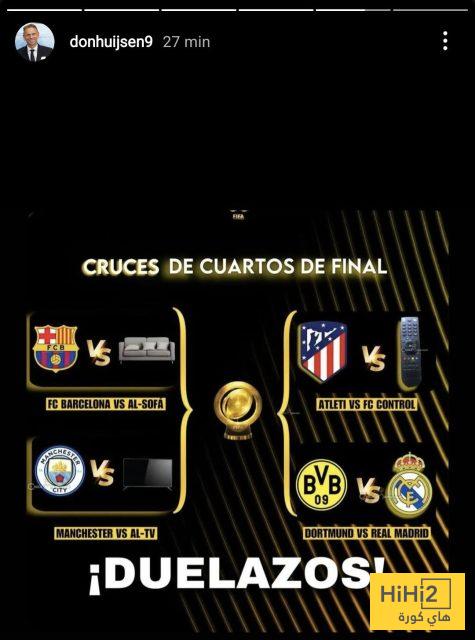 وقد احتوت الصورة التي أعاد نشرها والد هويسين على رسم كاريكاتيري يُظهر مواجهة برشلونة مع “الفريق الخيالي” المسمى “أل-صوفا”، وأتلتيكو مع “جهاز التحكم” الخاص بالتلفاز، ومانشستر سيتي مع “أل-تي في”، مما يُعتبر سخرية من خروج هذه الفرق من البطولة.