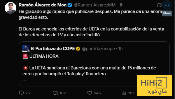 الصحفي رامون ألفاريز أثار الغموض بعد الاعلان عن تغريم برشلونة بتغريدة نشرها عبر حسابه الرسمي على منصة اكس .