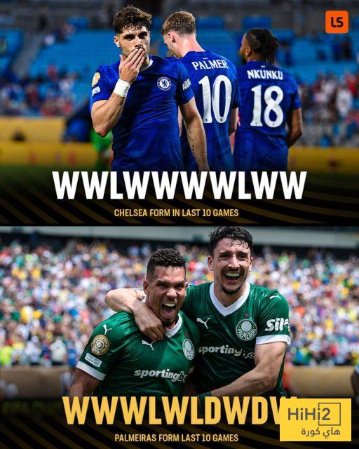 وأكدت إحصائيات موقع لايف سكور أن تشيلسي وبالميراس حققها انتصارات كثيرة في آخر 10 مباريات لهما في كل البطولات.