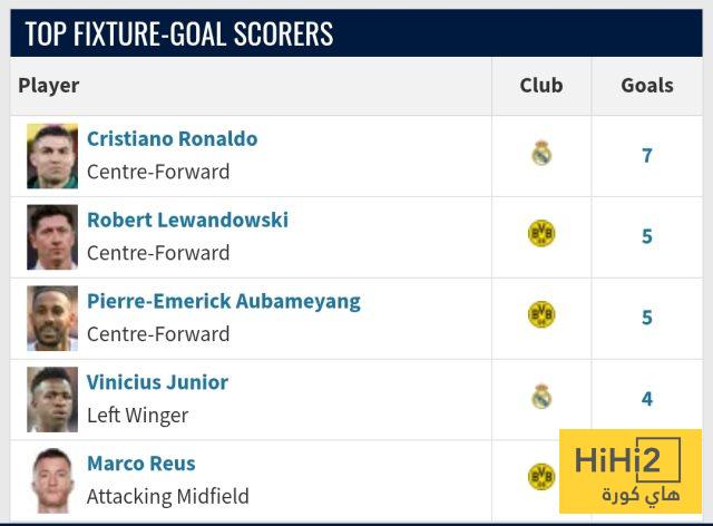 وجاء الأسطورة البرتغالية في المركز الأول بالقائمة برصيد 7 أهداف، بينما حل روبرت ليفاندوفسكي وإيميريك أوباميانج بالمركز الثاني بـ5 أهداف لكلًا منهما.
