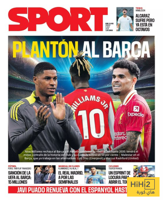 هاي كورة- عنونت صحيفة سبورت الكتالونية الضربة القاسية التي تلقها برشلونة من نيكو ويليامز، امس الجمعة، بـ “خيبة أمل للبارسا”.