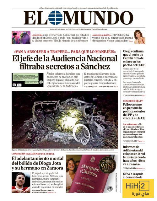 هاي كورة- تصاعدت موجة من الغضب تجاه صحيفة الموندو الإسبانية منذ أمس، وذلك بعد نشرها صورة لسيارة دياغو جوتا التي احترقت بالكامل في الحادث المأساوي.
