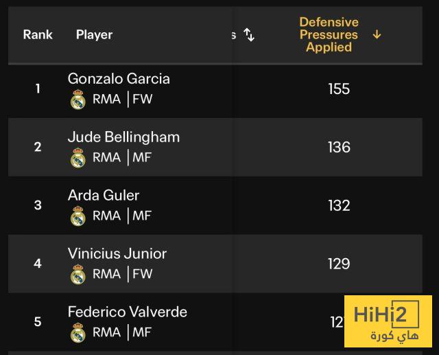 هاي كورة : بعد أول خمس مباريات لريال مدريد تحت قيادة ألونسو الحريص جدًا على الضغط العكسي خرجت لنا أرقام اللاعبين الأكثر ضغطًا على حامل الكرة أو بعباره اخري اللاعبين الأكثر جهدًا في الملعب من أجل استرداد الكره للفريق.