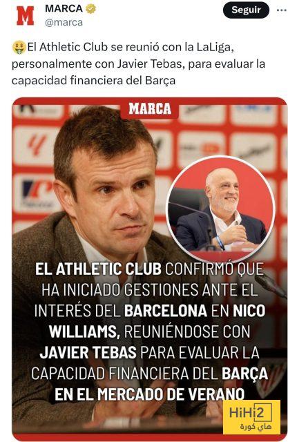فشل صفقة انتقال نيكو ويليامز إلى برشلونة يعود بالكامل إلى حالة عدم الثقة التي تسببت بها المعلومات التي كشفها رئيس الليغا لوكيل اللاعب، وإلى اللاعب نفسه وعائلته.