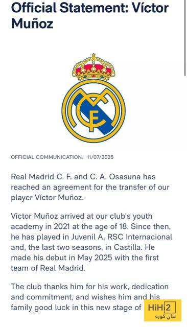 هاي كورة- أصدر نادي ريال مدريد بيانًا رسميًا يؤكد توصله إلى اتفاق مع نادي أوساسونا الإسباني بشأن انتقال لاعبه فيكتور مونوز خلال سوق الانتقالات الصيفية الحالية.