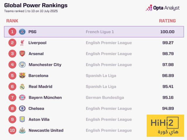 هاي كورة- نشرت شبكة اوبتا المختصة قائمة الاندية العشرة الافضل في العالم خلال العام 2025 مع ترتيبها بعدما شارف الموسم على نهايته حيث لم يتبقى سوى نهائي كاس العالم للأندية في الولايات المتحدة الامريكية يوم الاحد القادم .
