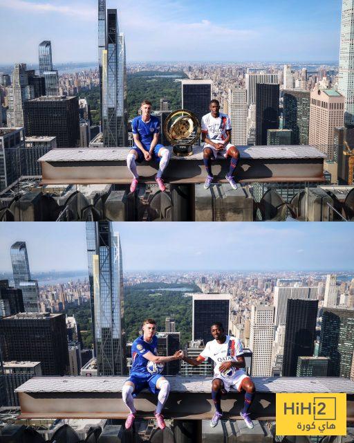 هاي كورة- جلس عثمان ديمبيلي نجم باريس سان جيرمان، وكول بالمر لاعب تشيلسي، على حافة أحد ناطحات السحاب في نيويورك، في لقطة مذهلة التُقطت قبل المباراة النهائية المرتقبة لكأس العالم للأندية.
