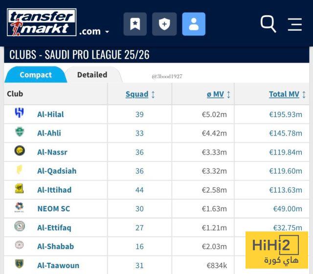 هاي كورة – قفز نادي القادسية إلى المركز الرابع بين أعلى الأندية السعودية من حيث القيمة السوقية، بحسب أحدث الإحصائيات من موقع “ترانسفير ماركت”، بعد تعاقده مع المهاجم الإيطالي ماتيو ريتيغي.