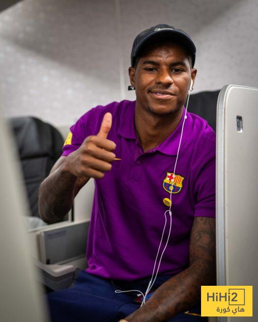 التقرير يرصد لاعبي برشلونة و هم داخل الطائرة منهم الوافد الجديد الجناح الانجليزي ماركوس راشفورد الذي اختار الفرنسي جول كوندي ليجلس معه في الطائرة .