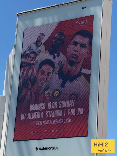 هاي كورة – بدأت شوارع مدينة ألميريا الإسبانية تتزين باللوحات الإعلانية التي تُروج للمواجهة الودية المرتقبة بين النصر وألميريا، والتي ستقام يوم الأحد 10 أغسطس على ملعب “UD Almería” في تمام الساعة 7:00 مساءً.