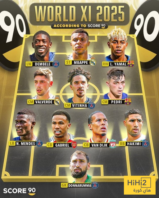 هاي كورة-كشفت شبكة Score 90 عن التشكيلة المثالية لأفضل أحد عشر لاعبًا في العالم خلال موسم 2024-2025، والتي ضمت نخبة من أبرز النجوم الذين تألقوا مع أنديتهم الأوروبية في مختلف المسابقات.