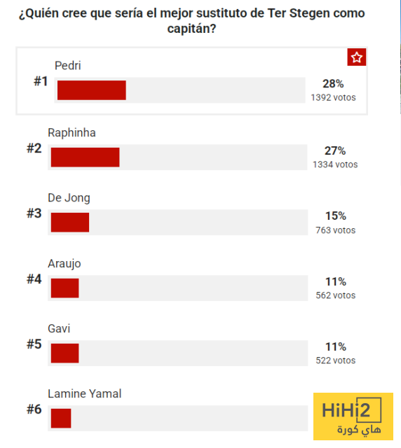 وشهد الاستفتاء مشاركة أكثر من 5017 مشجع، عبّروا عن آرائهم بشأن من يستحق حمل شارة القيادة خلال الموسم المقبل، في ظل التغييرات التي تلوح في أفق غرفة الملابس الكتالونية.