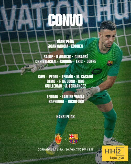 أعلن هانسي فليك مدرب برشلونة قائمة البرسا الرسمية للقاء مايوركا اليوم في الليغا الإسبانية، والتي شهدت تواجد الوافدين حديثا خوان غارسيا و راشفورد.