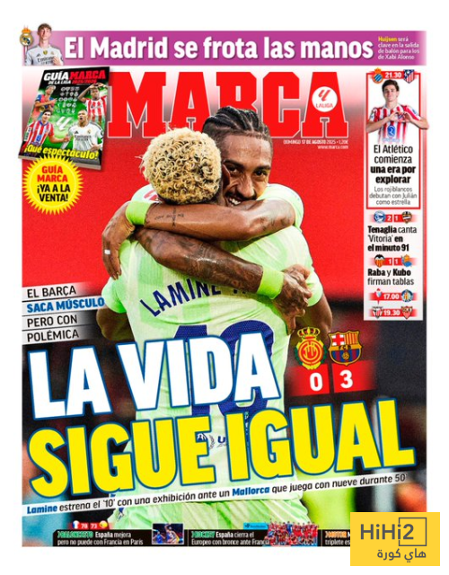 هاي كورة- تصدر فوز برشلونة على مايوركا (3-0) غلاف صحيفة ماركا الاسبانية الصادر اليوم الاحد 17 اغسطس .