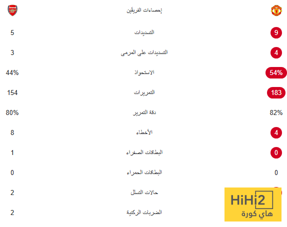 إحصائيات الشوط الأول: