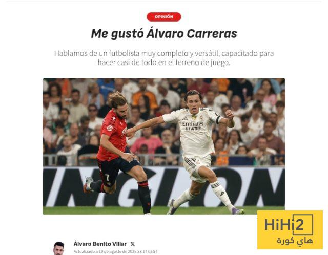 في أول ظهور له مع الفريق الأول لريال مدريد على ملعب البرنابيو في افتتاح موسم 25/26، أثبت ألفارو كاريراس أنه لاعب متكامل وذكي تكتيكيًا.