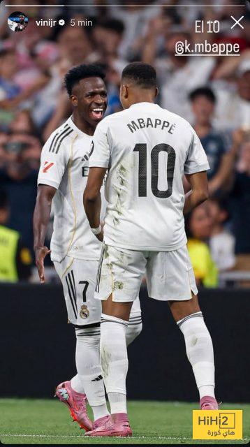 هاي كورة – نشر فينيسيوس جونيور عبر حسابه في إنستغرام “ستوري” صورة له مع كيليان مبابي أثناء احتفالهما بهدف هذا الأخير ضد أوساسونا، وأرفقها بالرقم 10.