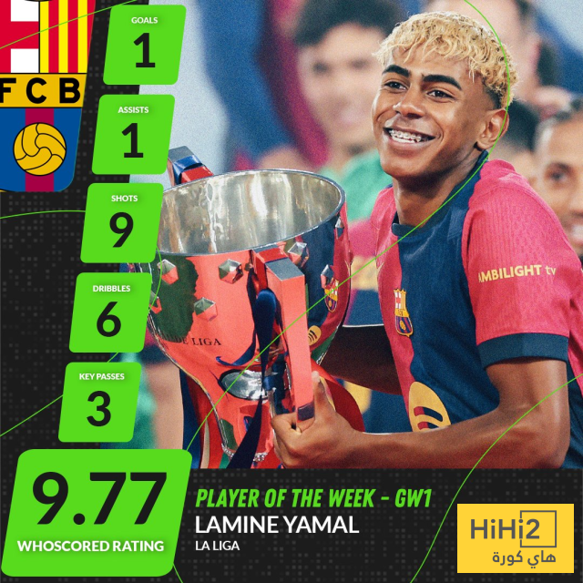 هاي كورة- حسب موقع whoscored لامين يامال نجم برشلونة هو افضل لاعب في الجولة الاولى من بطولة الدوري الاسباني .