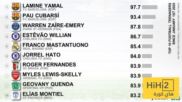 المركز الدولي للدراسيات الرياضية كشف عن اسماء اللاعبين العشرة الافضل في العالم تحت 20 عاما وتصدر لامين القائمة ووصيفه هو باو كوبارسي ويليهم لاعب باريس سان جيرمان الشاب زائير ايمري .