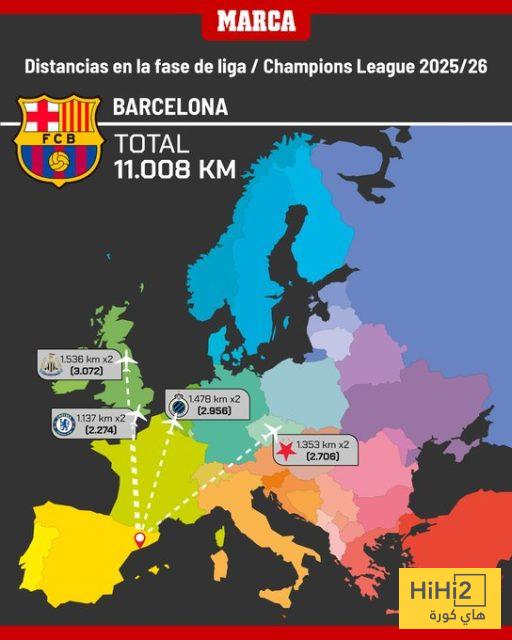 في المقابل، سيكون برشلونة أقل إرهاقًا من ناحية السفر، حيث سيقطع الفريق بقيادة هانز فليك 11,008 كيلومترًا رحلات إلى: