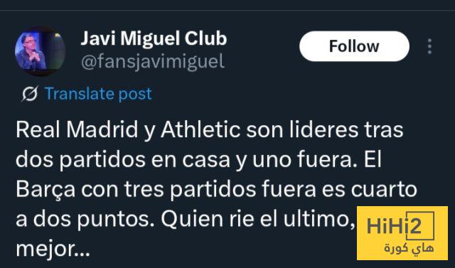 كتب ميغيل: “ريال مدريد وأتلتيك يتصدران بعد خوض كل منهما مباراتين على أرضه وواحدة خارجها، برشلونة، بثلاث مباريات خارج ملعبه، يحتل المركز الرابع بفارق نقطتين، من يضحك أخيرًا، يضحك كثيرًا…”